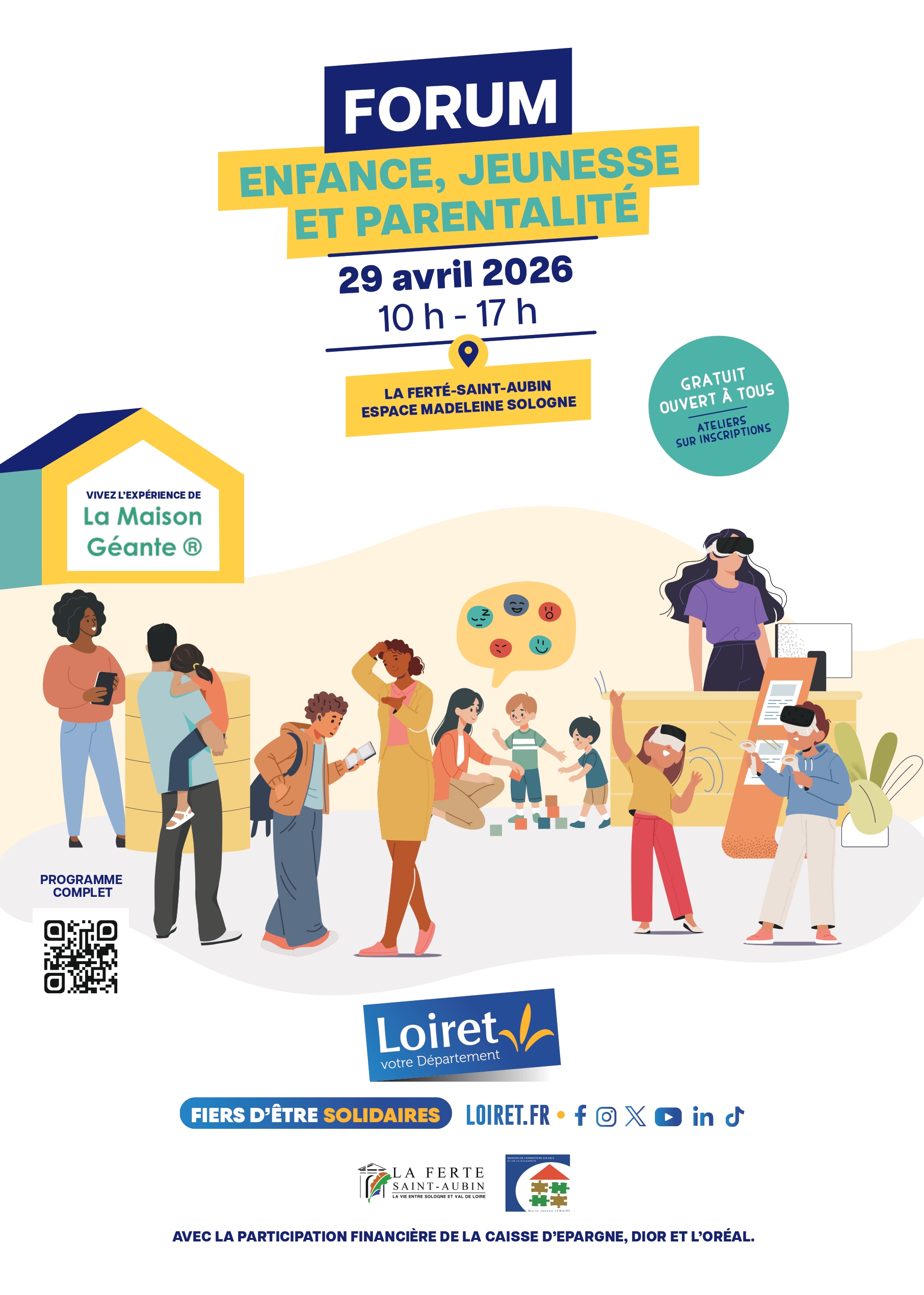 Le département en partenariat avec la MASS de La Ferté Saint Aubin organise un forum enfance, jeunesse et parentalité le mercredi 29 avril de 10h à 17h à l’Espace Madeleine Sologne à La Ferté Saint Aubin.